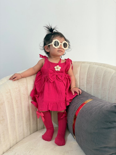 پیراهن و کیف موسلین پاپیون دار نوزادی
